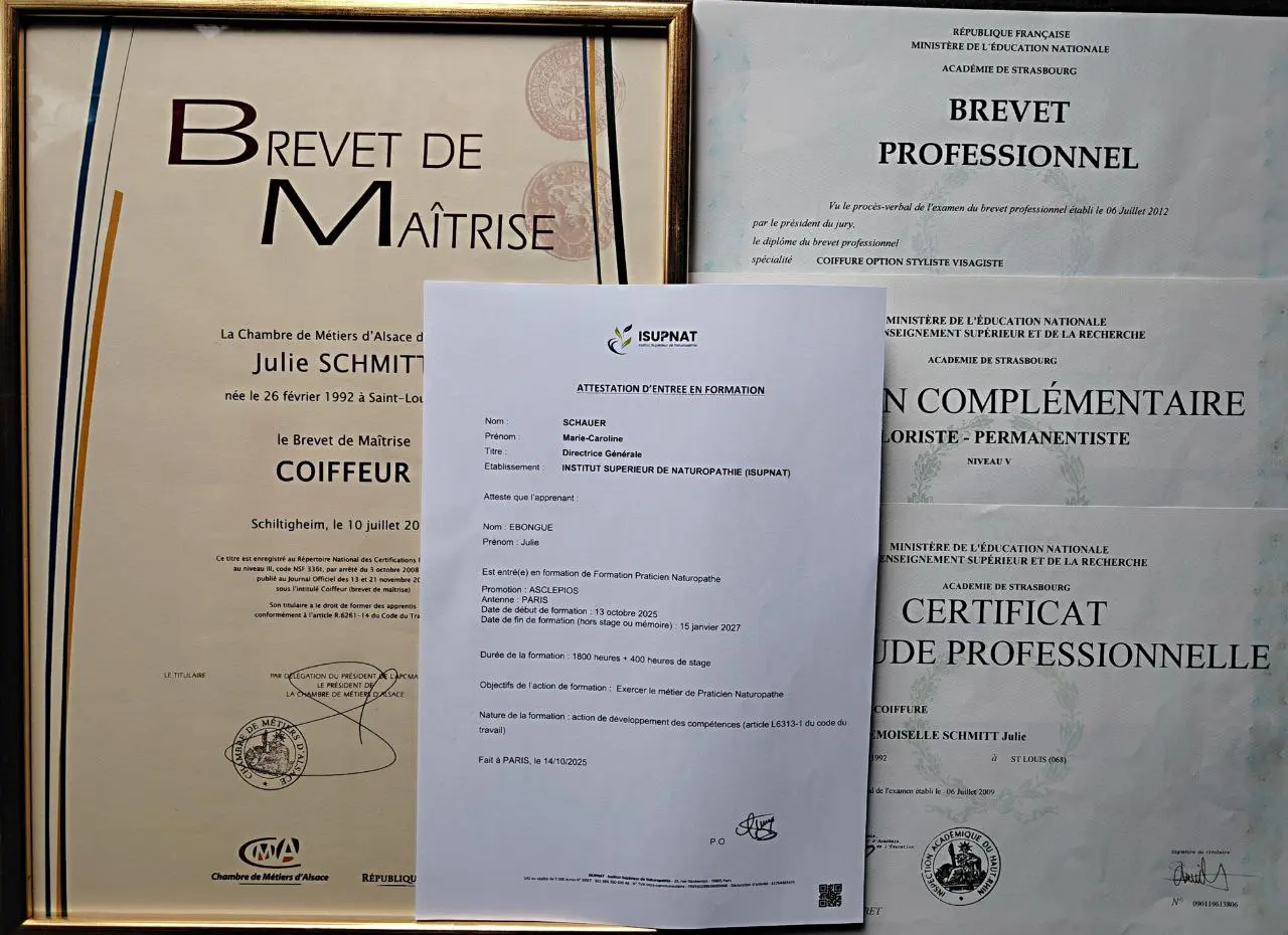 Depuis 18 ans, j’ai exercé la coiffure, un métier passion qui m’a permis d’explorer toutes ses facettes : du travail en salon au management, en passant par le statut de formatrice en école de coiffure. C'est lors de l’enseignement, que j’ai découvert une autre dimension de ma vocation : la transmission de savoirs et de valeurs. Cette envie de partager reste aujourd’hui au cœur de mon projet en naturopathie.